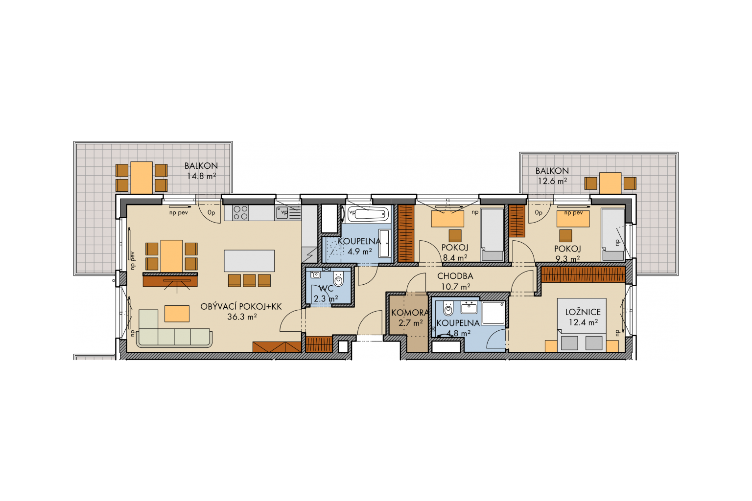 - Etapu tvoří 83 nových bytů o dispozicích 1+kk (od 25 m2) až po 4+kk (do 119 m2)