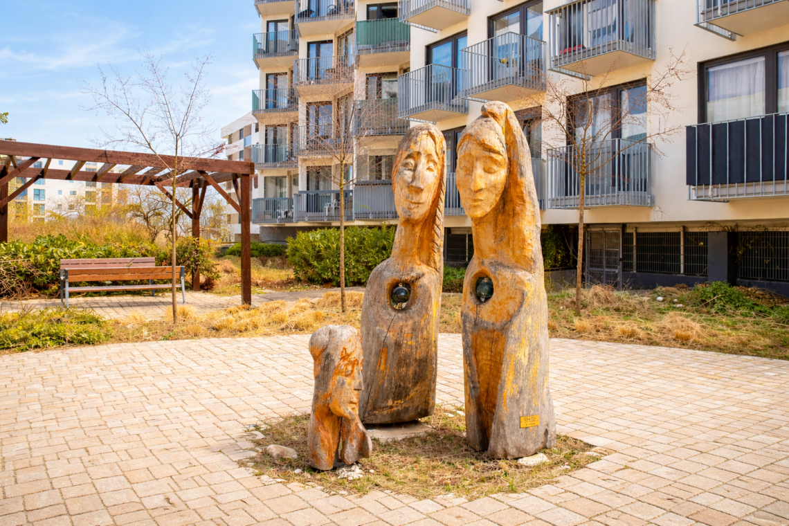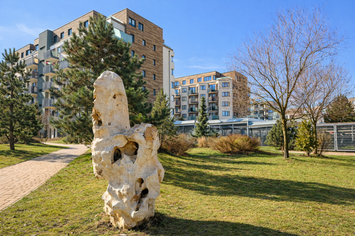 Další zastávkou může být parčík v ulici Ferbasové, kde se nachází dílo Slunce a Měsíc od paní Kellerové. Připomíná, že město není jen místem výstavby, ale také prostorem pro každodenní život, odpočinek a růst. Její další dílo, Hvězdy, najdete v parčíku v ulici Vítové. Působí klidně a symbolicky otevírá prostor pro fantazii, zastavení a krátký pohled vzhůru.
