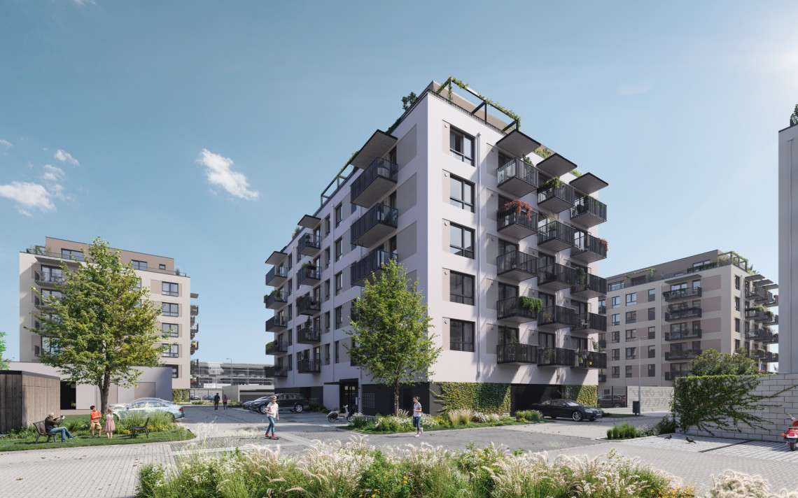Dům G zahrnuje celkem 49 bytů v dispozicích od 1+kk (24,5 m²) až po rodinné 4+kk (94,7 m²). V nabídce tak najdete jak útulné startovací byty, tak prostorné byty pro rodiny. K bytům náleží balkony či terasy a samozřejmostí je i parkování – ať už v garáži pod domem, nebo na přilehlých parkovacích stáních. Vnitrobloky se zelení nabídnou prostor pro posezení, grilování, malé zahradničení i bezpečné zázemí pro děti.