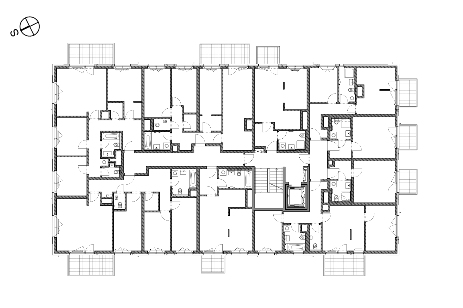 - Dům se skládá ze 49 bytů, dispozice od 1+kk (24,5 m2) do 4+kk (94,7 m2)