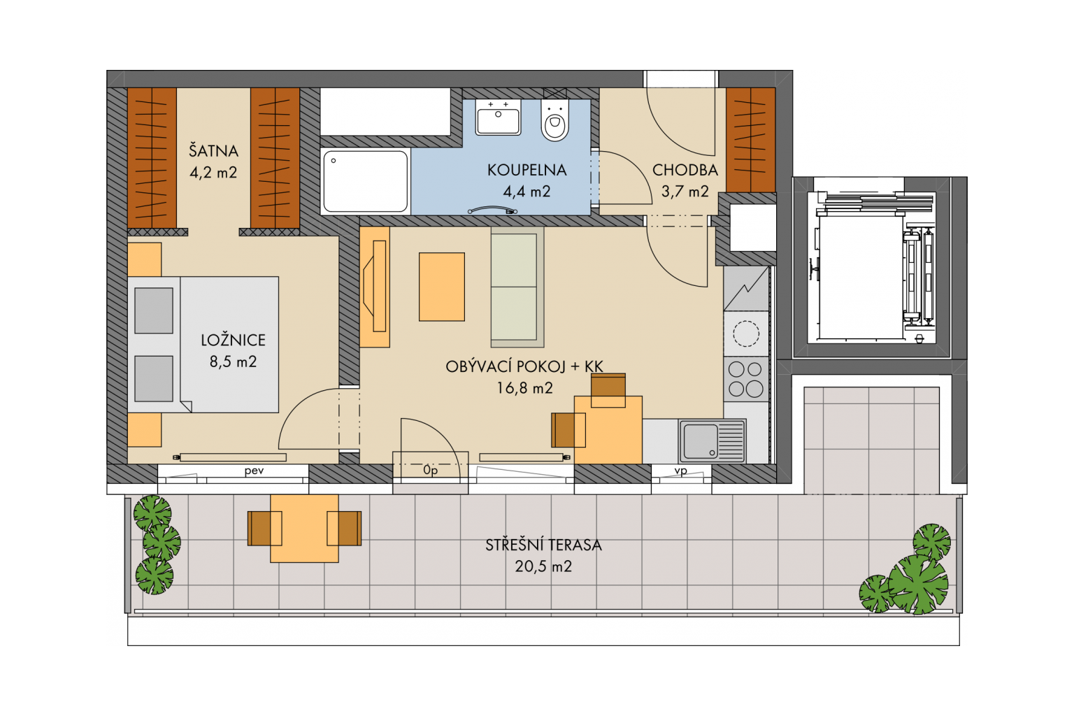 - 292 906 €iThe price of the apartment unit is valid subject to the employment of a 90/10 payment schedule. Should a different manner of payment be employed, the price shall be agreed with the client individually. The listed prices do not include the garage parking space, the parking space outside of the garage and, as the case may be, a utility room and a cellar.