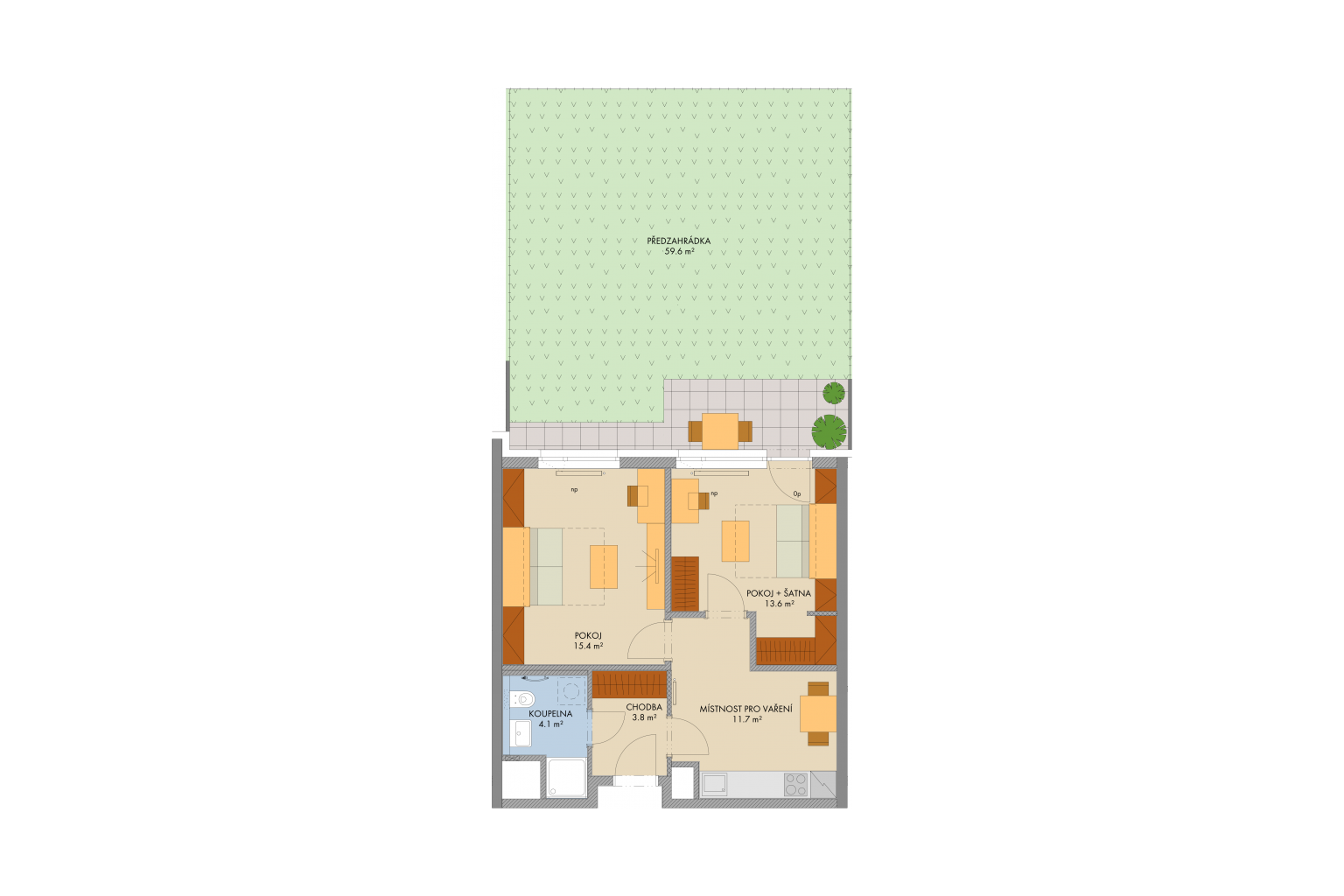 - 346 053 €iThe price of the apartment unit is valid subject to the employment of a 90/10 payment schedule. Should a different manner of payment be employed, the price shall be agreed with the client individually. The listed prices do not include the garage parking space, the parking space outside of the garage and, as the case may be, a utility room and a cellar.