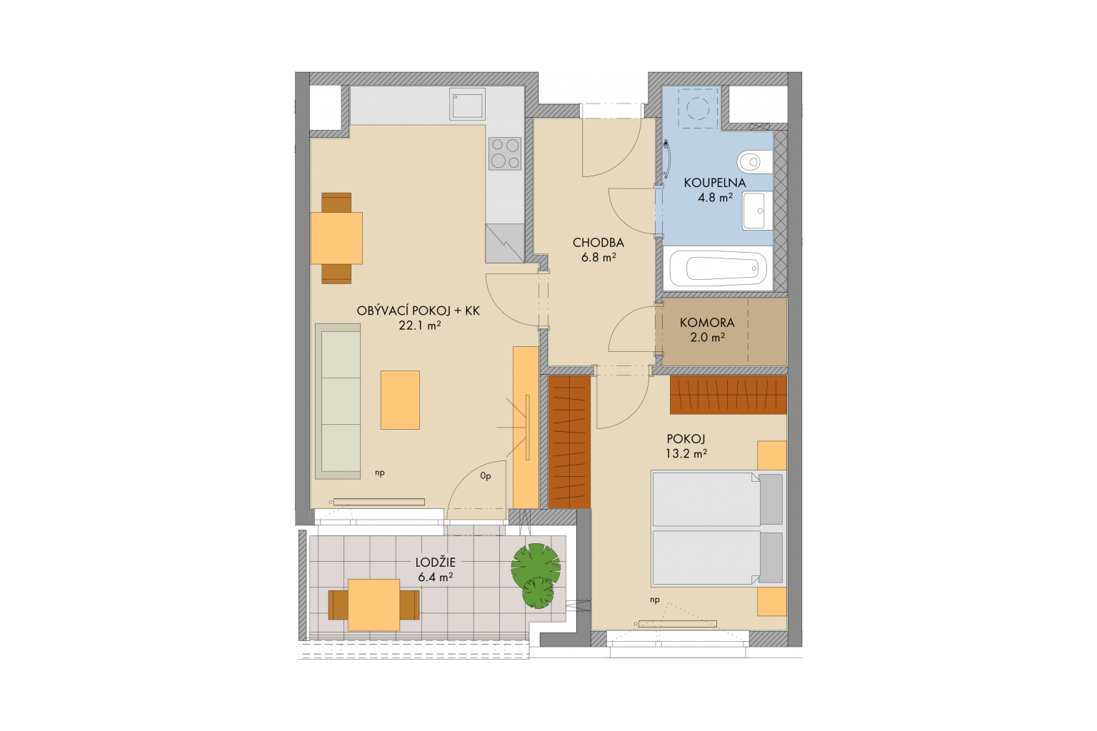 - All flats have a balcony, loggia or terrace