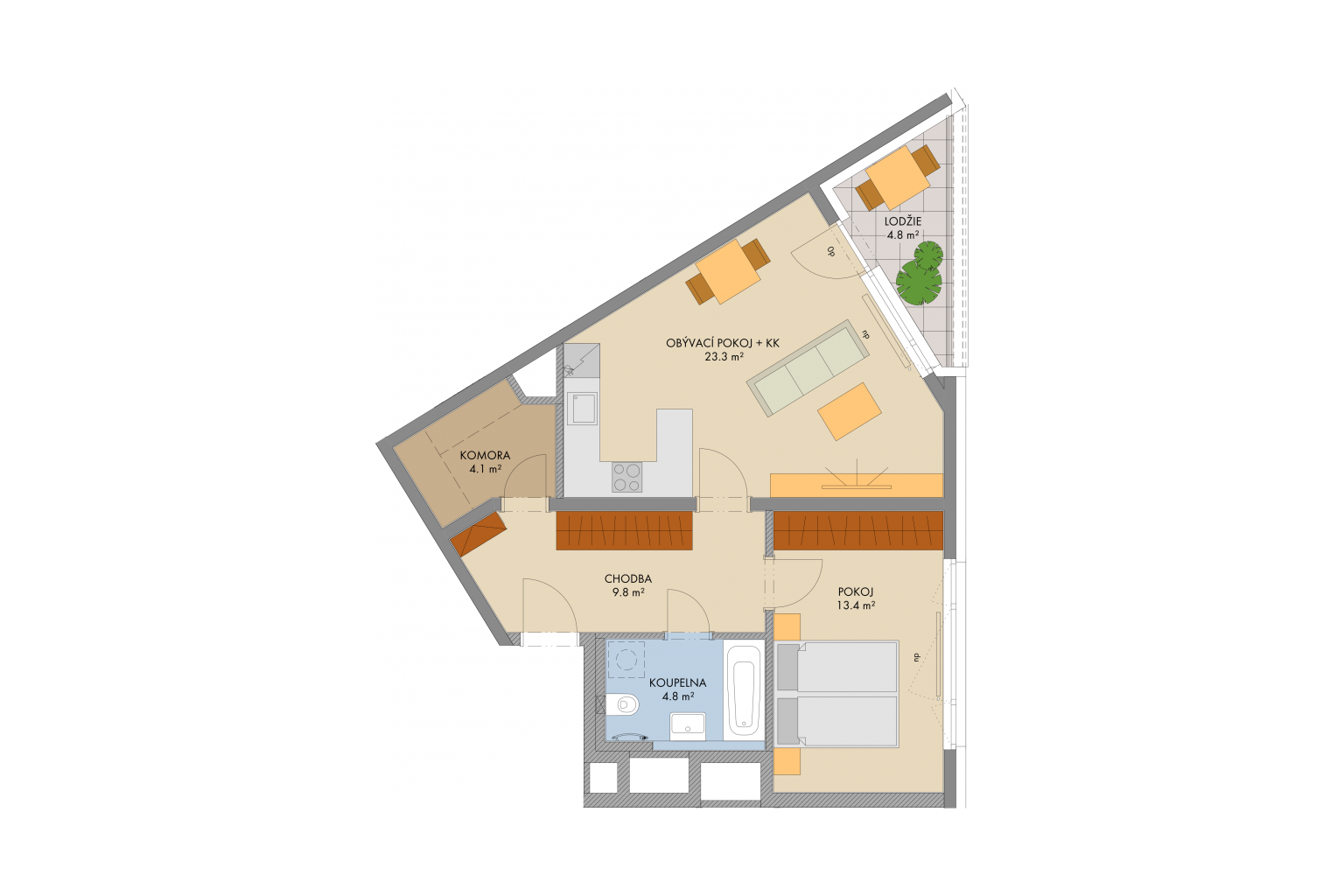 - 345 581 €iThe price of the apartment unit is valid subject to the employment of a 90/10 payment schedule. Should a different manner of payment be employed, the price shall be agreed with the client individually. The listed prices do not include the garage parking space, the parking space outside of the garage and, as the case may be, a utility room and a cellar.