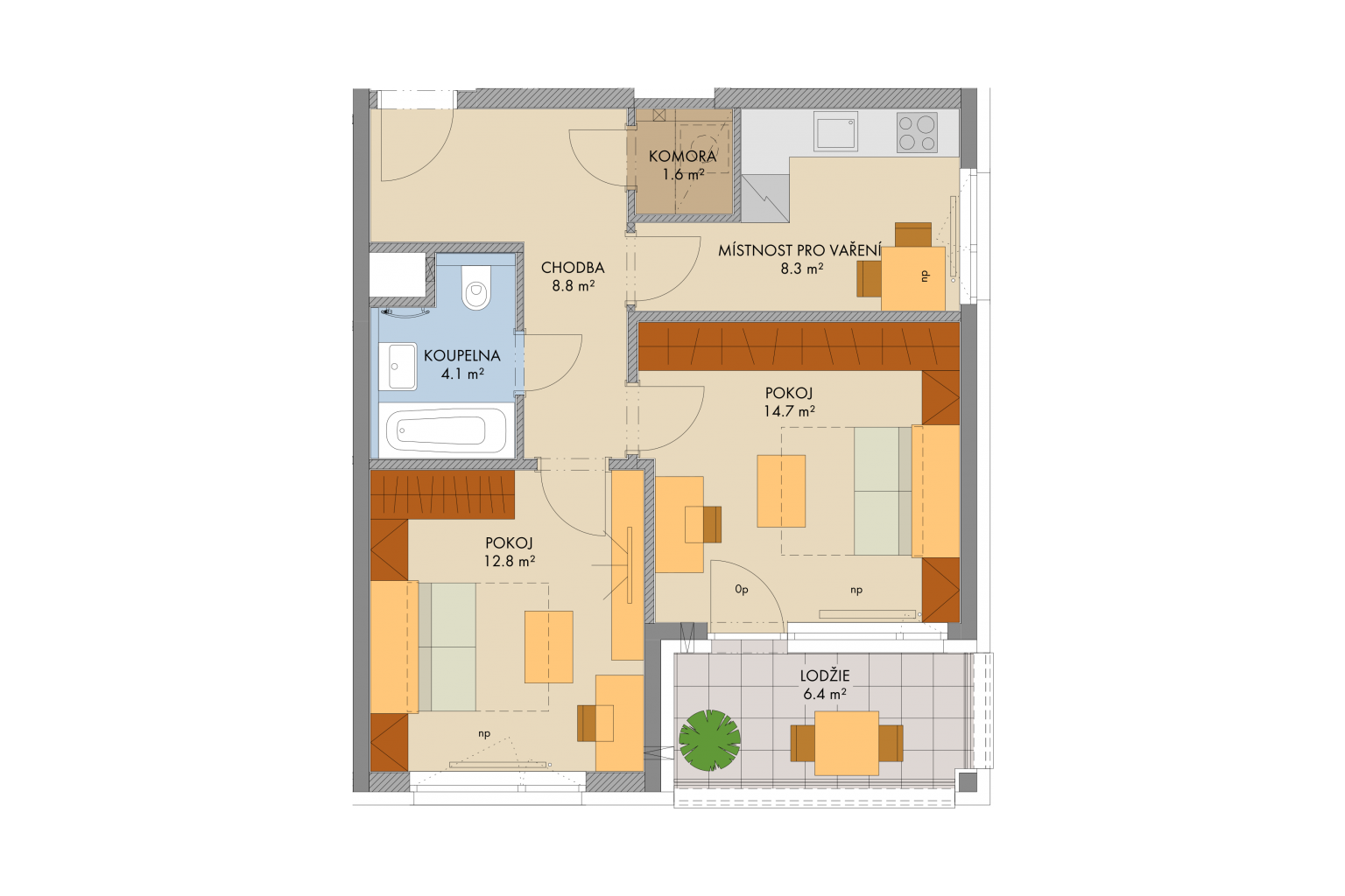 - 329 305 €iThe price of the apartment unit is valid subject to the employment of a 90/10 payment schedule. Should a different manner of payment be employed, the price shall be agreed with the client individually. The listed prices do not include the garage parking space, the parking space outside of the garage and, as the case may be, a utility room and a cellar.