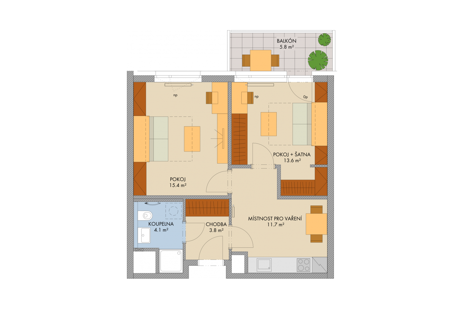 - 333 801 €iThe price of the apartment unit is valid subject to the employment of a 90/10 payment schedule. Should a different manner of payment be employed, the price shall be agreed with the client individually. The listed prices do not include the garage parking space, the parking space outside of the garage and, as the case may be, a utility room and a cellar.