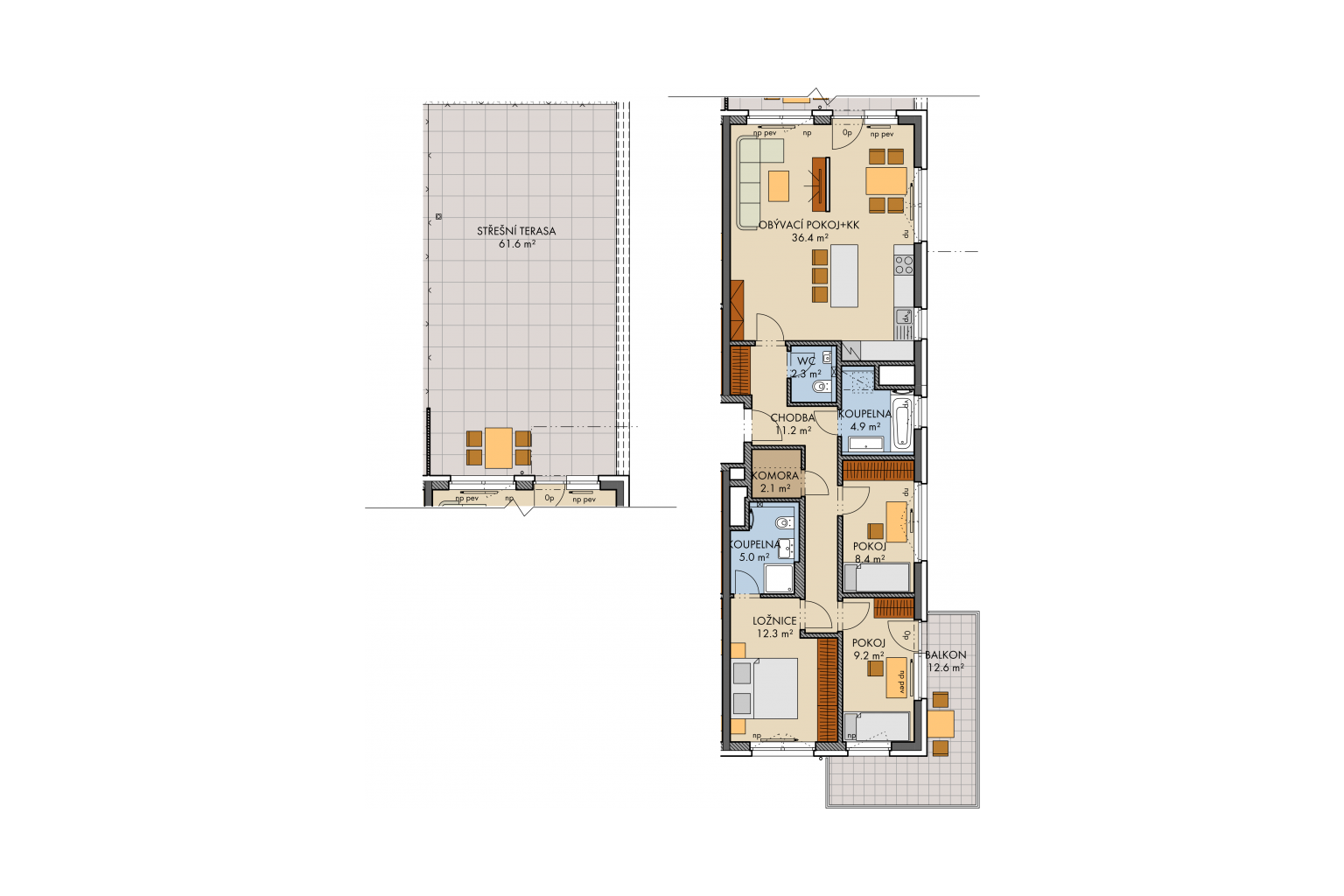 - Totaly 82 new apartments with the layouts of 1+kitchenette (from 25,2 m2) to more spacious 4+kitchenette (up to 119,5 m2)