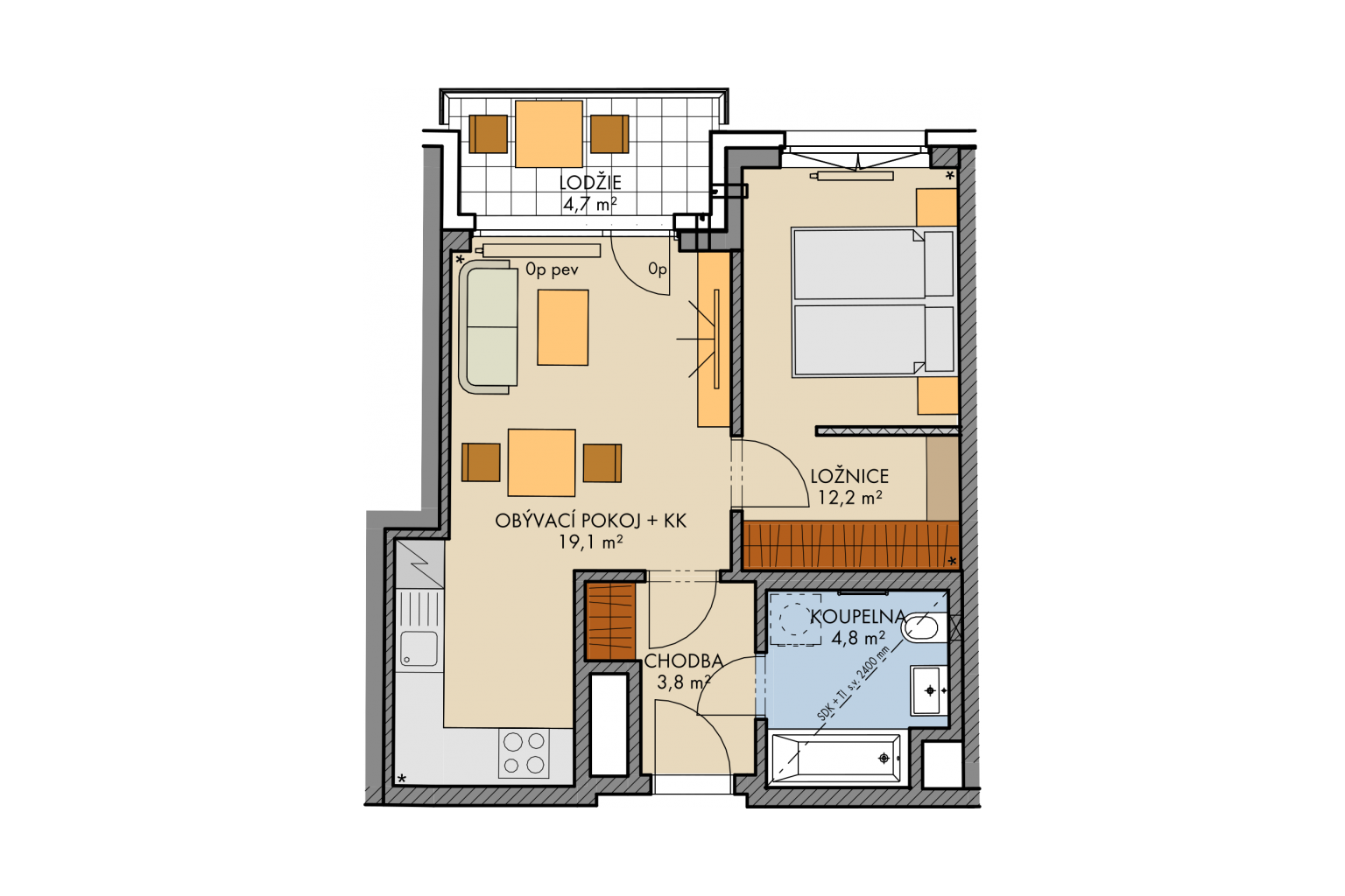 - There is 119 new apartments with the layouts of 1+kitchenette (from 25,6 m2) to more spacious 5+kitchenette (up to 116,4 m2)