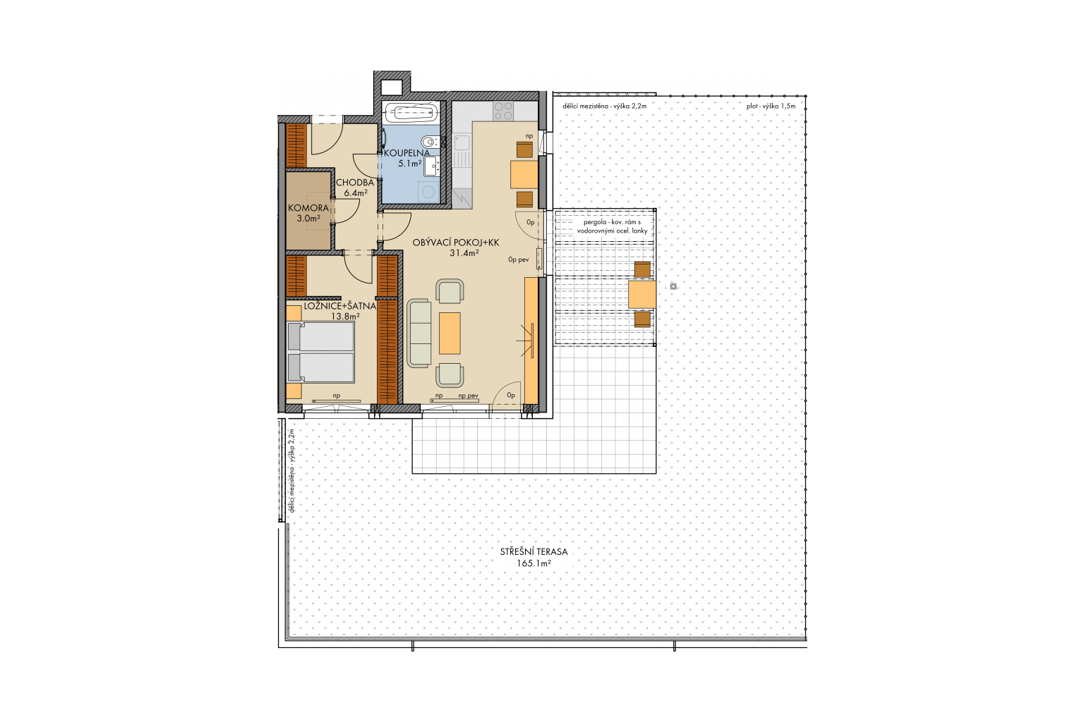 - Total 38 flats in this stage with layout of 1+kitchenette (from 38 m2) to more spacious 4+kitchenette (110,8 m2)