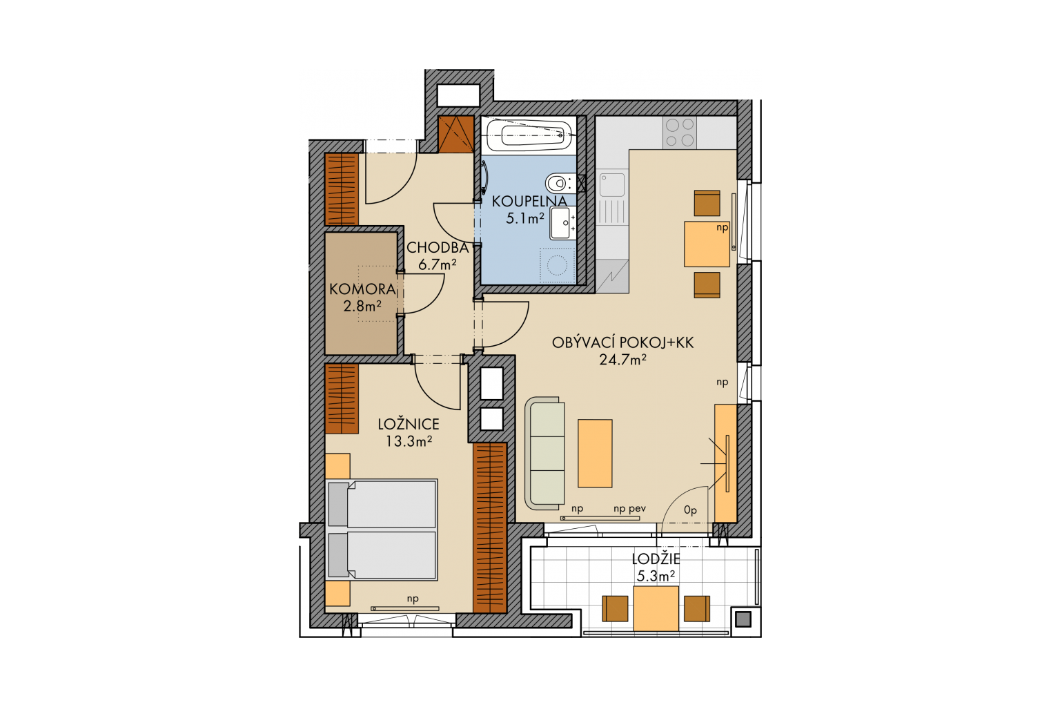 - Total 38 flats in this stage with layout of 1+kitchenette (from 38 m2) to more spacious 4+kitchenette (110,8 m2)