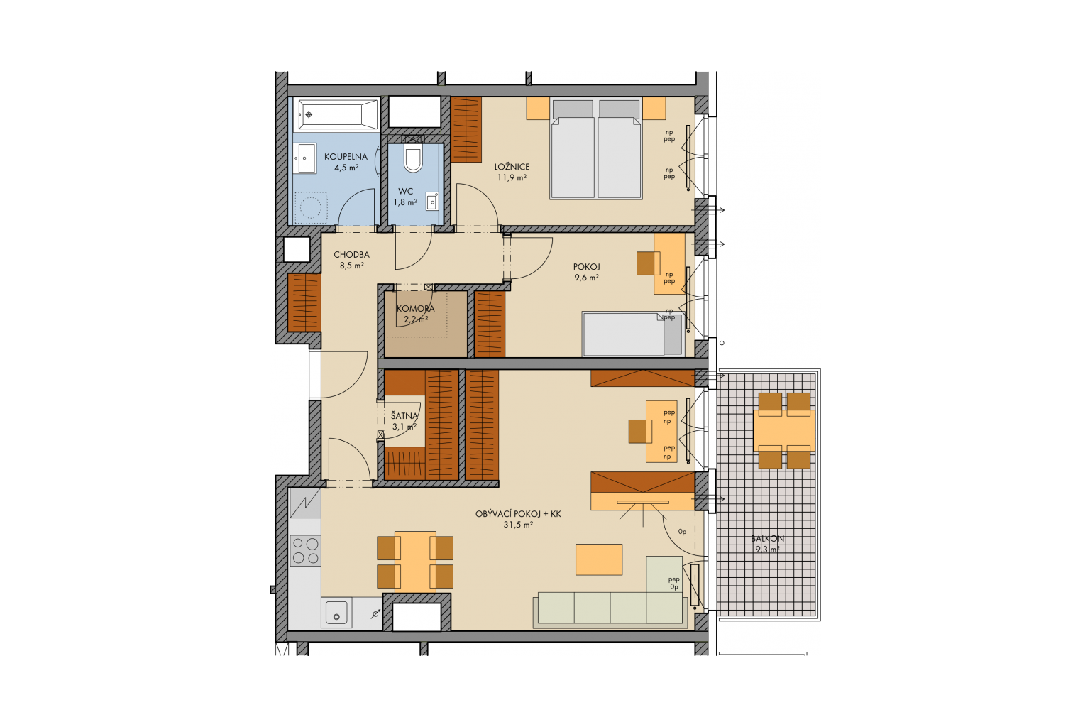 - Each of the apartments has its balcony or terrace