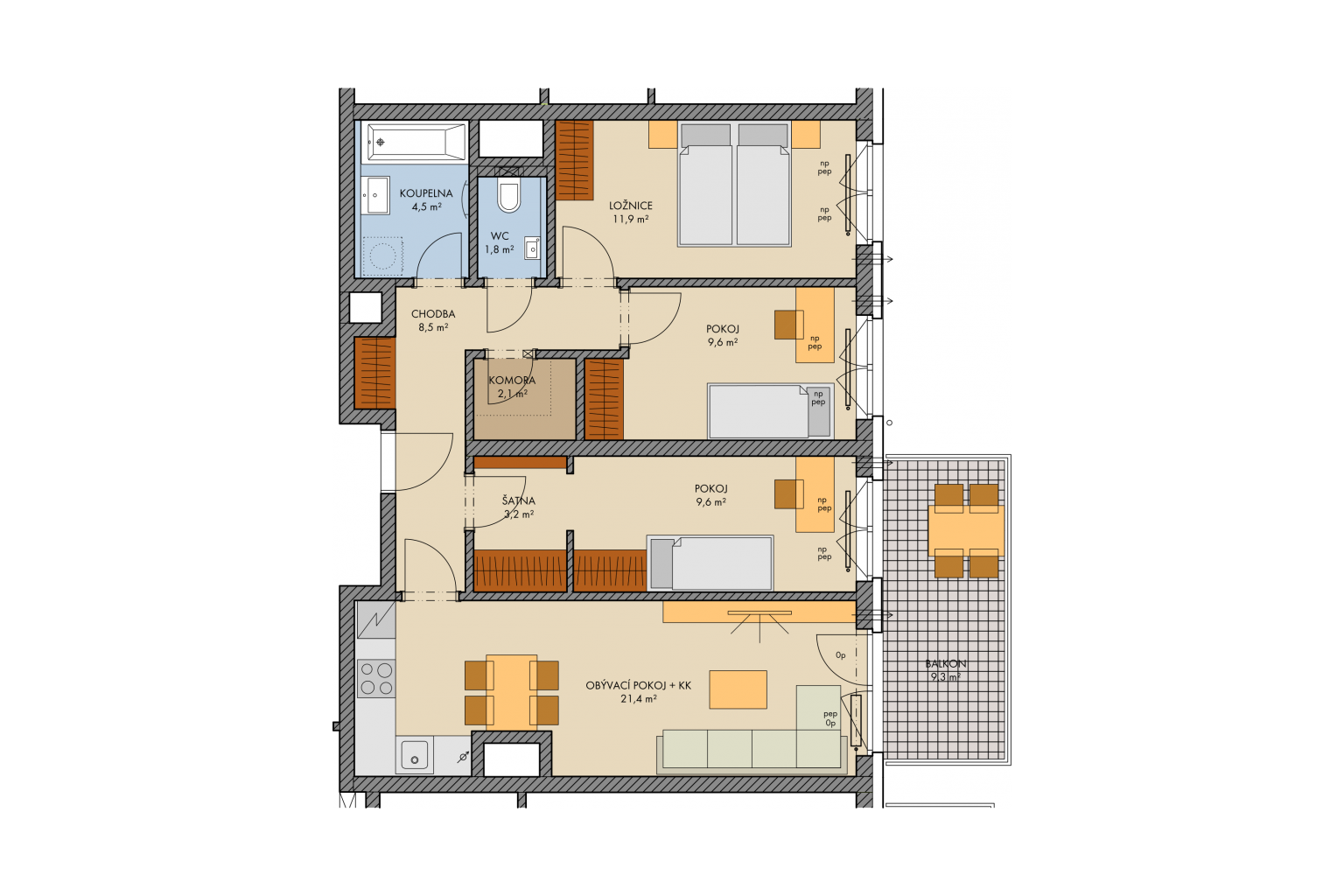 - Each of the apartments has its balcony or terrace